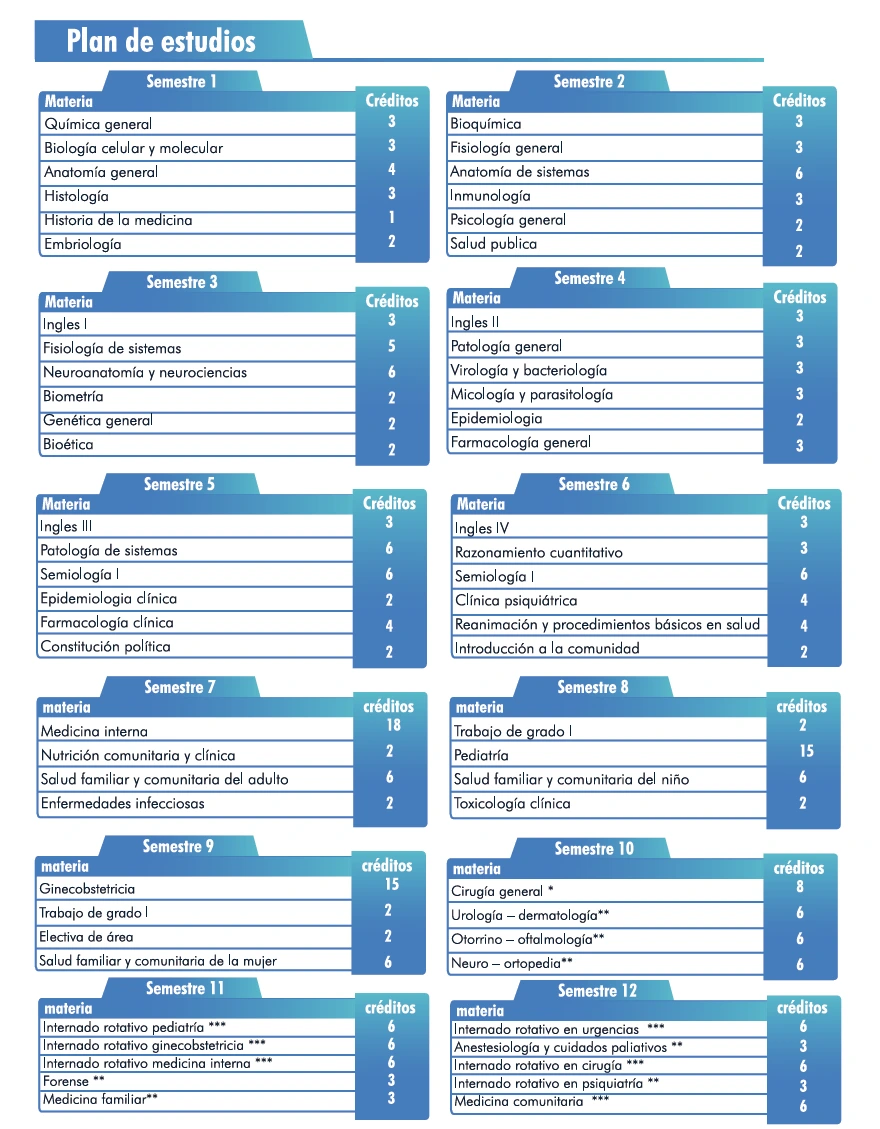 - *: Rotación de 8 semanas