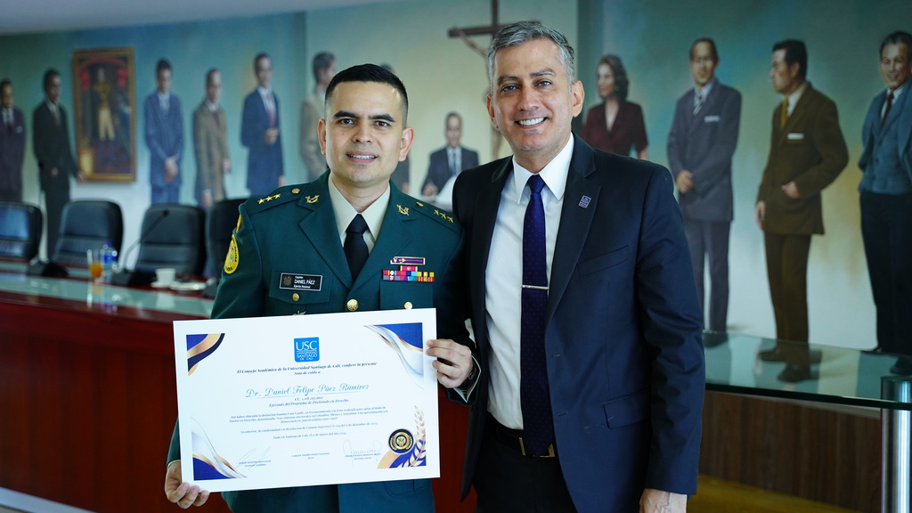 En un acontecimiento trascendental para la comunidad académica, la Universidad Santiago de Cali ha tenido el privilegio de reconocer la trayectoria profesional del Doctor Daniel Felipe Páez Ramírez, destacado egresado santiaguino y primer Doctor en Derecho de la institución, quien fue merecedor del más alto reconocimiento «Summa Cum Laude» en honor a su destacado trabajo doctoral.