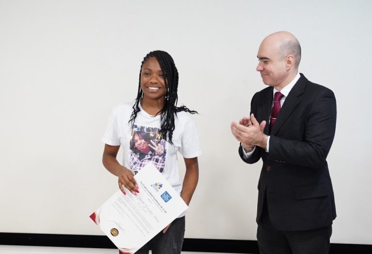La Universidad Santiago de Cali realizó un solemne acto de entrega de una beca de educación superior a la joven Hilary Liceth González Sierra, hermana de la pequeña Dayana Michel, recientemente asesinada en la capital del Valle.